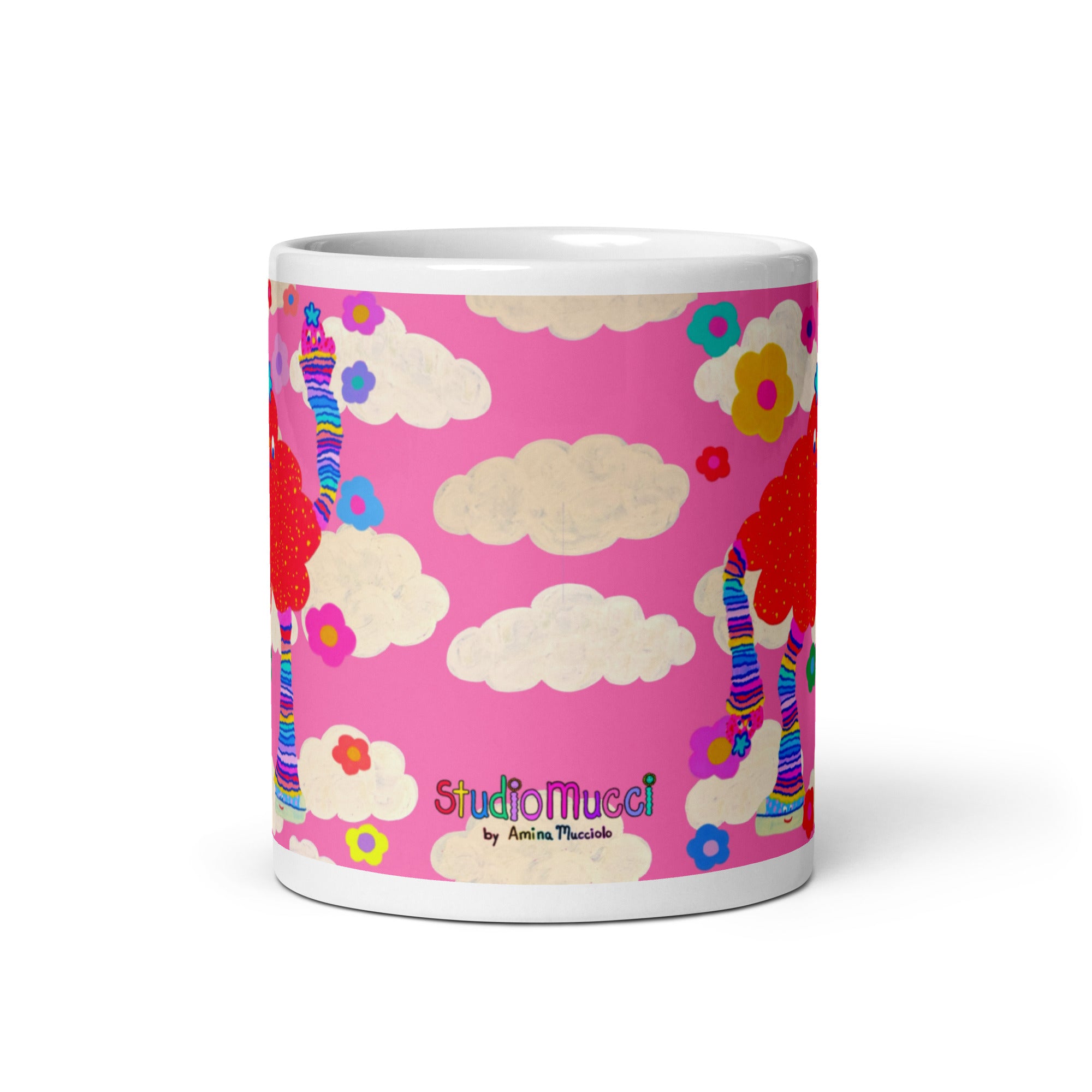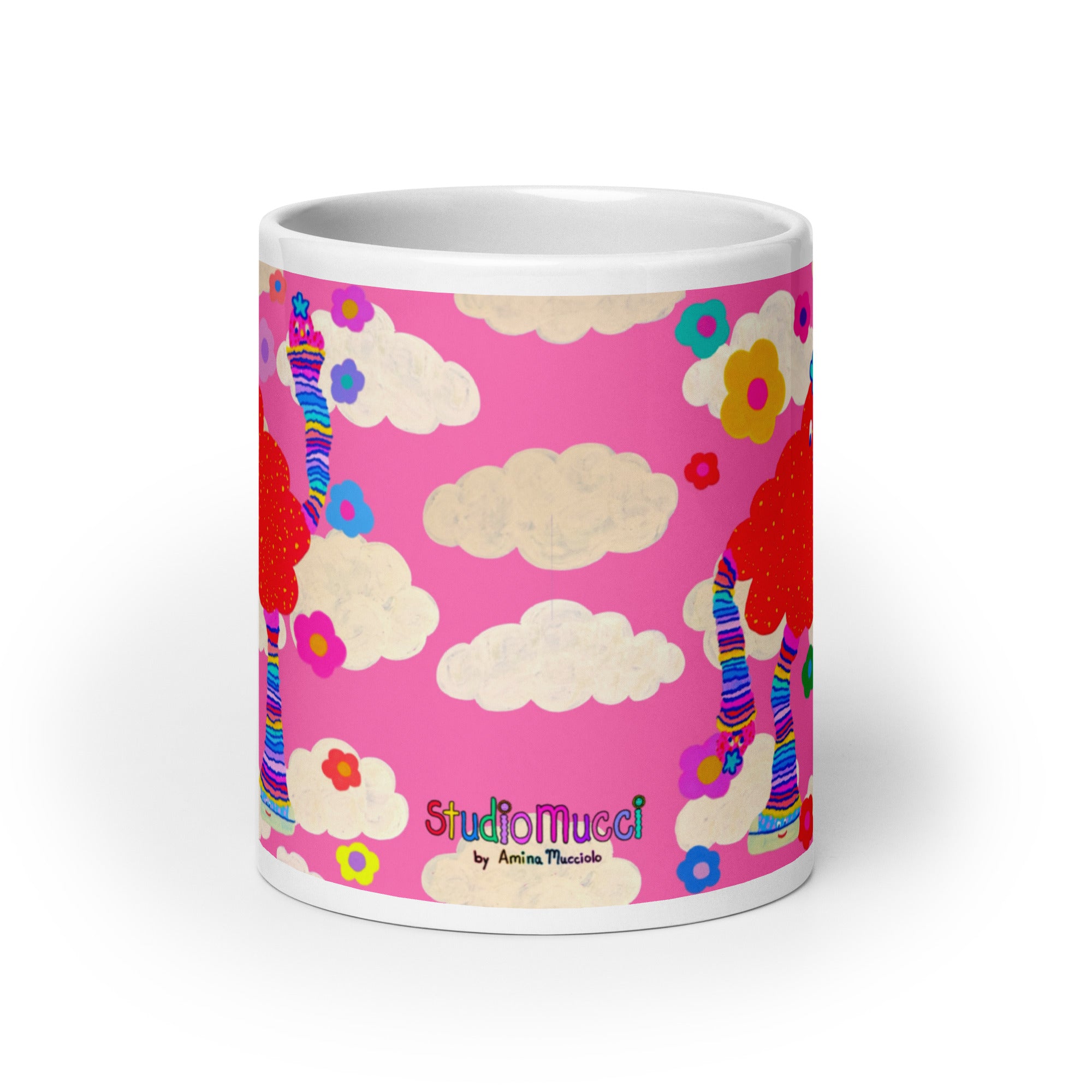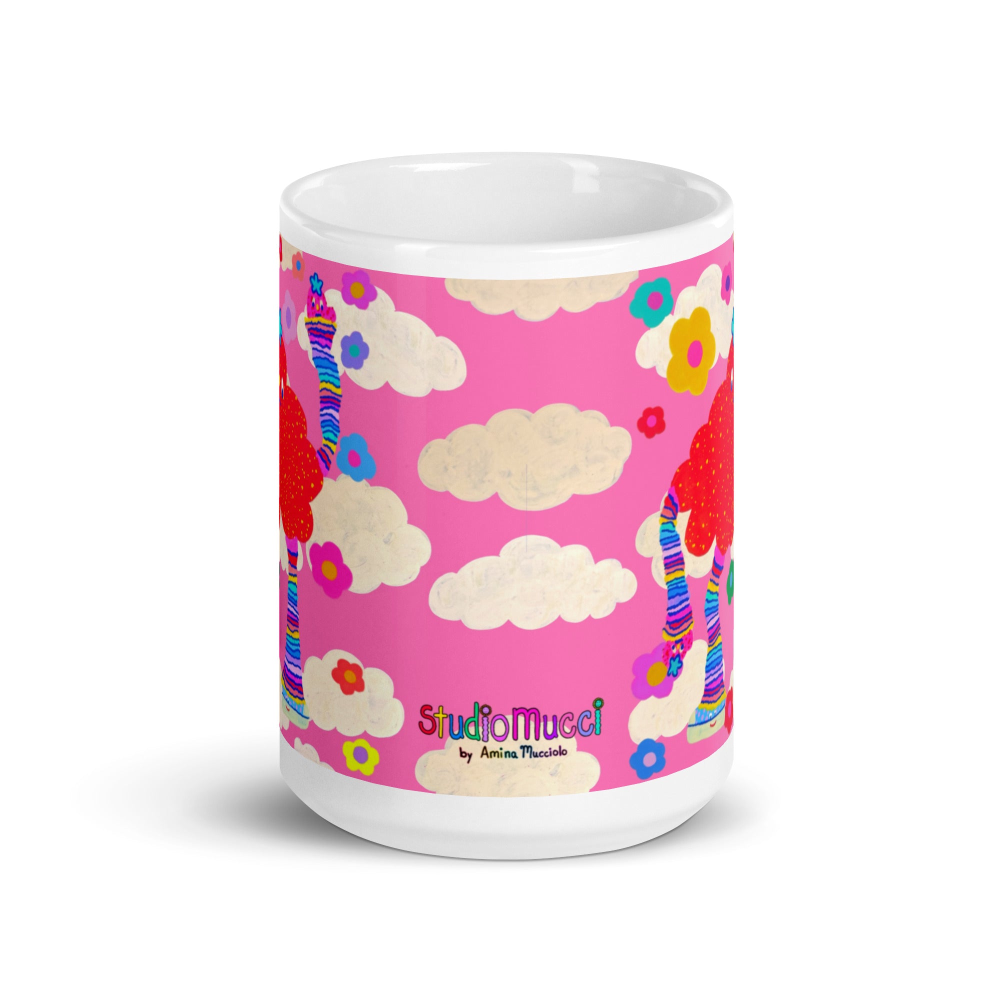 Mug design is based on an original mixed media artwork (acrylic paint, Posca markers, and digital collage) by Amina Mucciolo