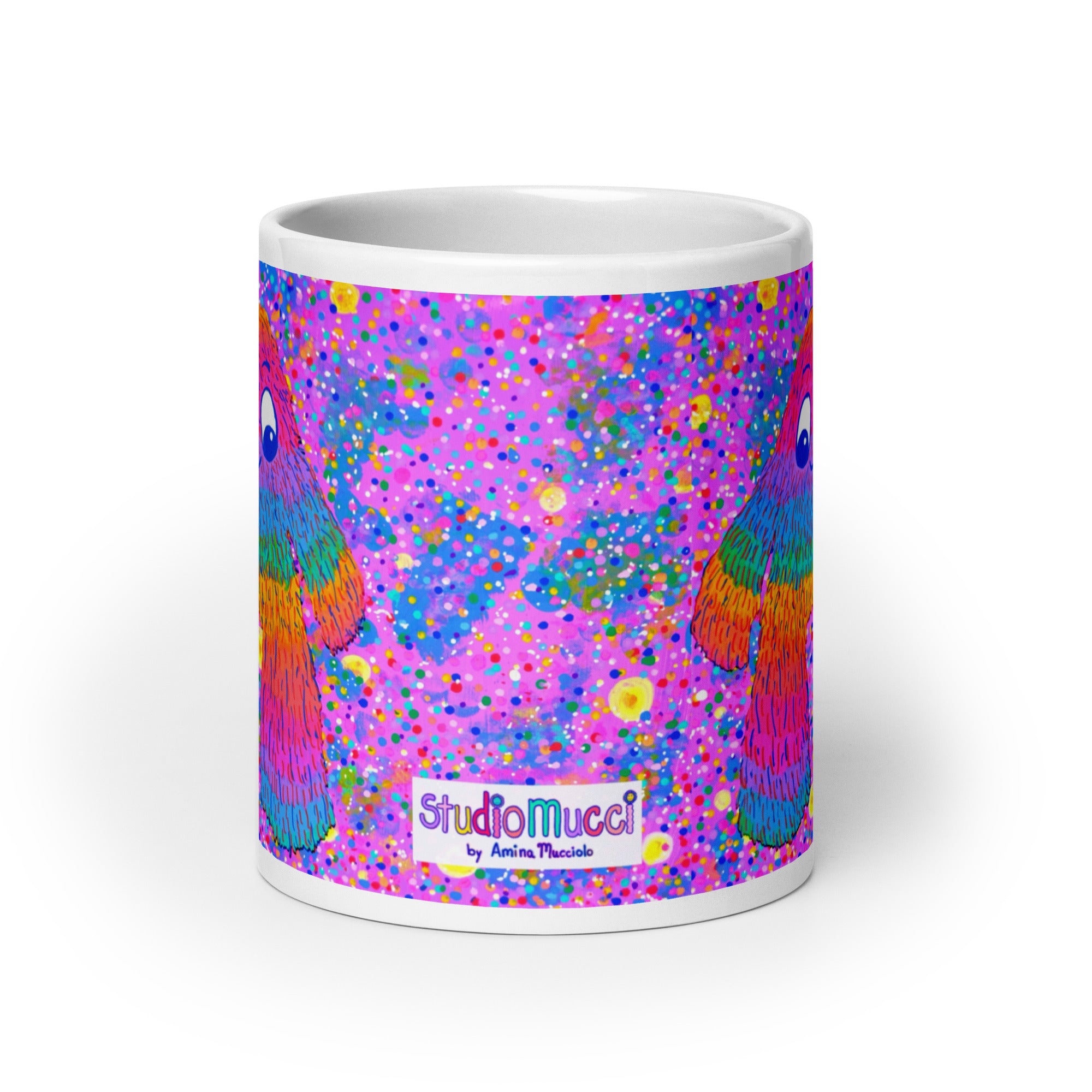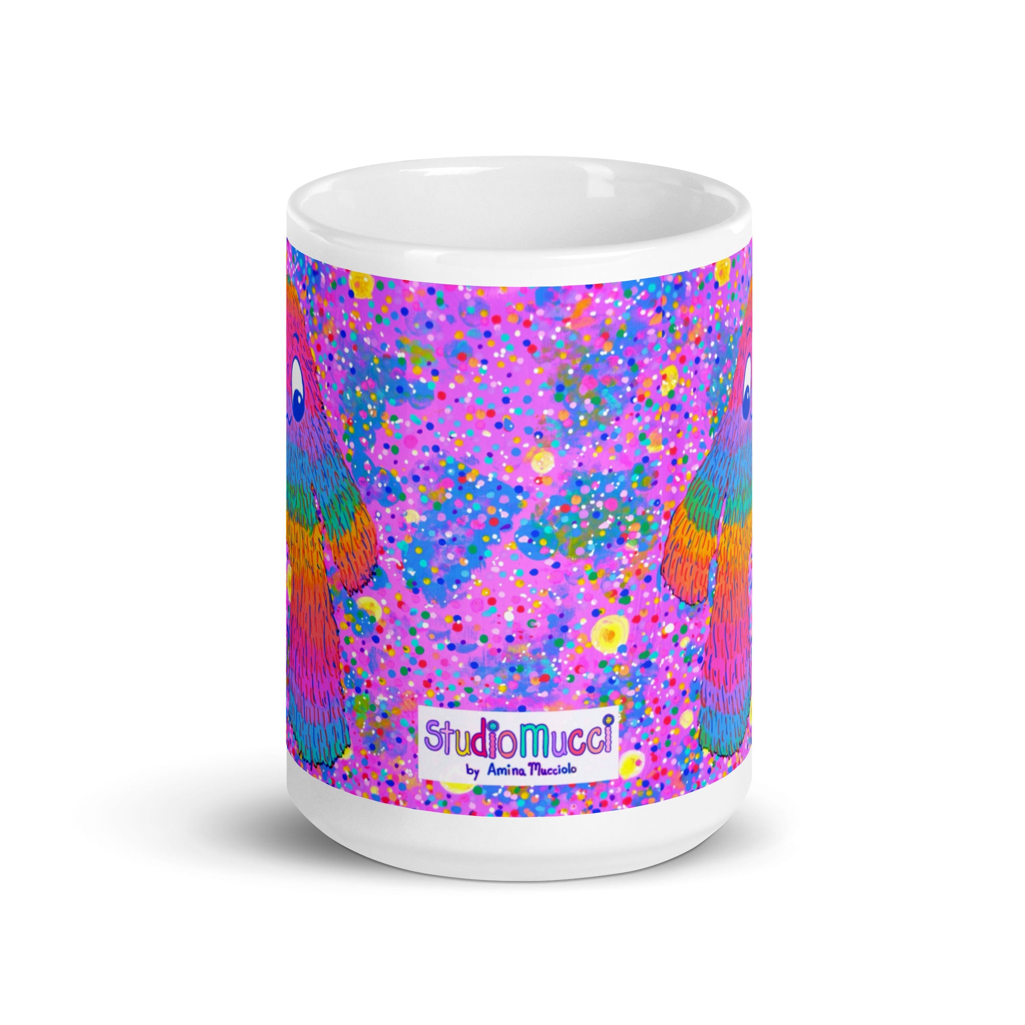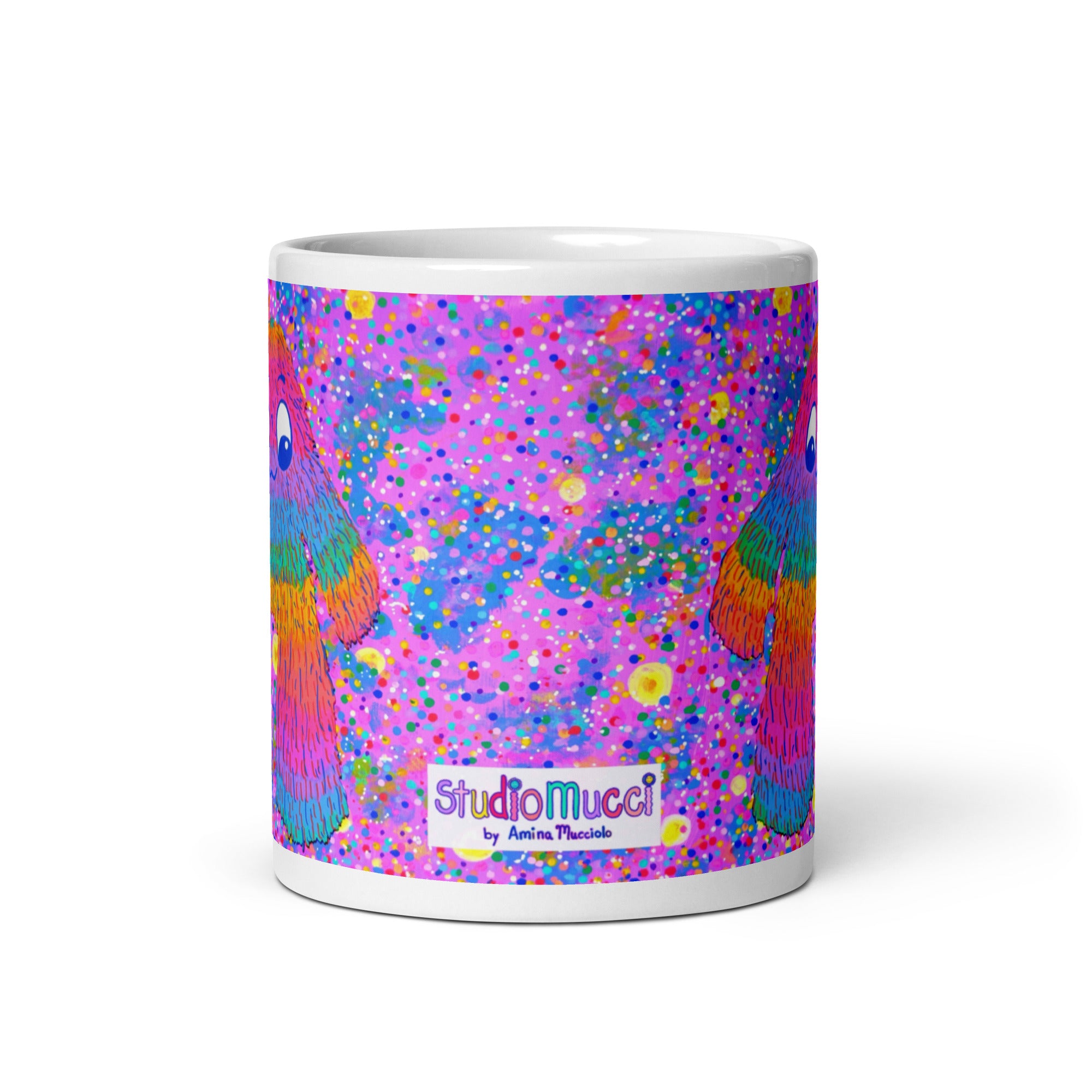 Mug design is based on an original mixed media artwork (acrylic paint, Posca markers, and digital collage) by Amina Mucciolo
