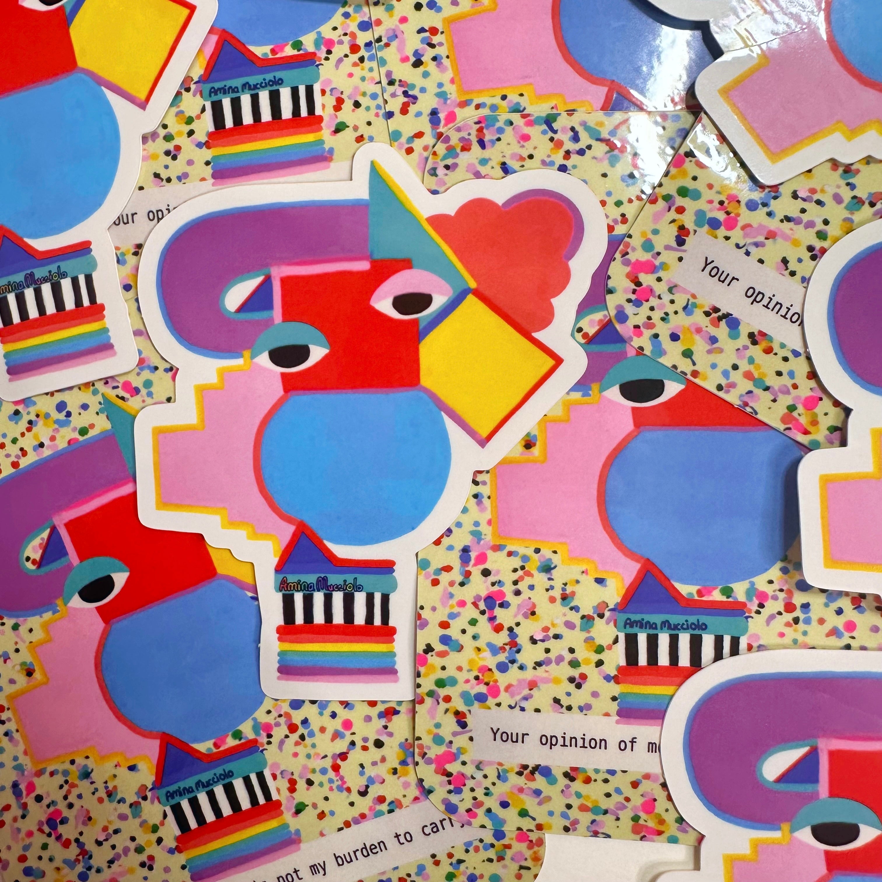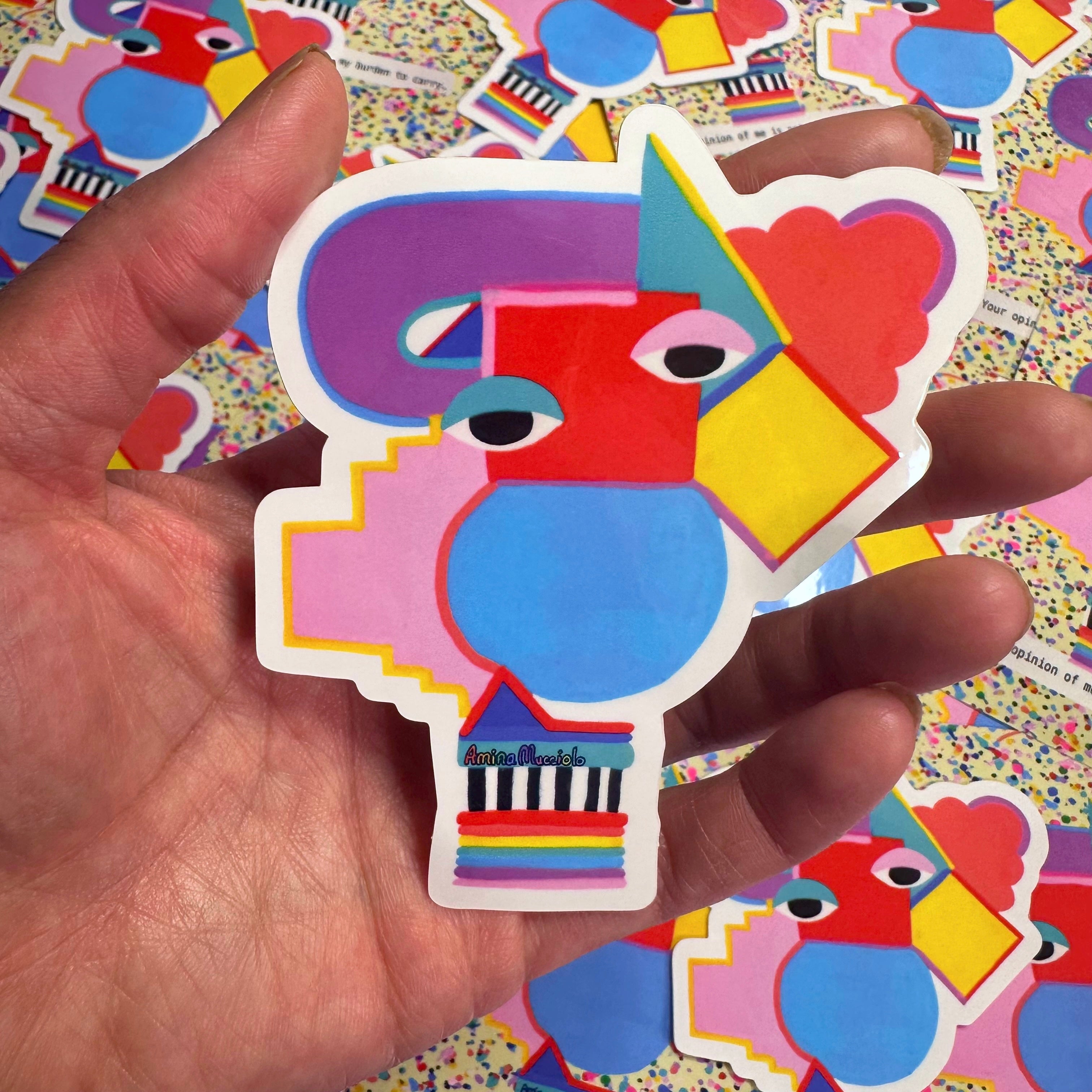 Vinyl sticker of Amina Mucciolo's original print. This sticker approximately is 4” x 4”.