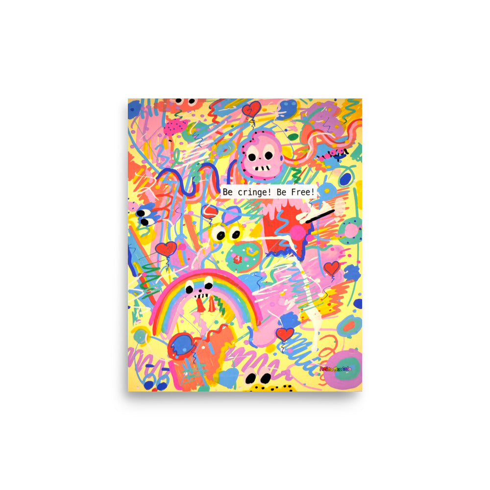 Be Cringe Be Free print is based on an original mixed media artwork (acrylic paint, Posca markers, and digital collage) by Amina Mucciolo