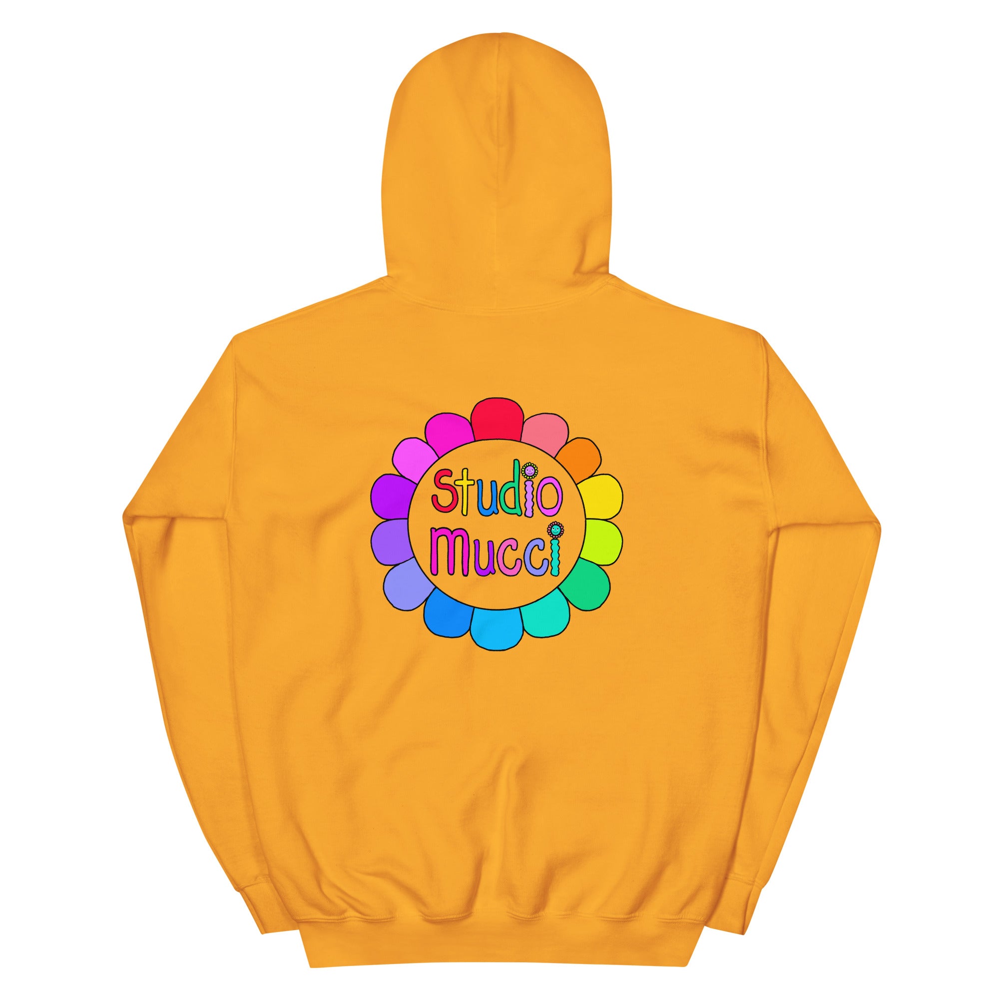 This hoodie design is based on an original mixed media artwork (acrylic paint, Posca markers, and digital collage) by Amina Mucciolo