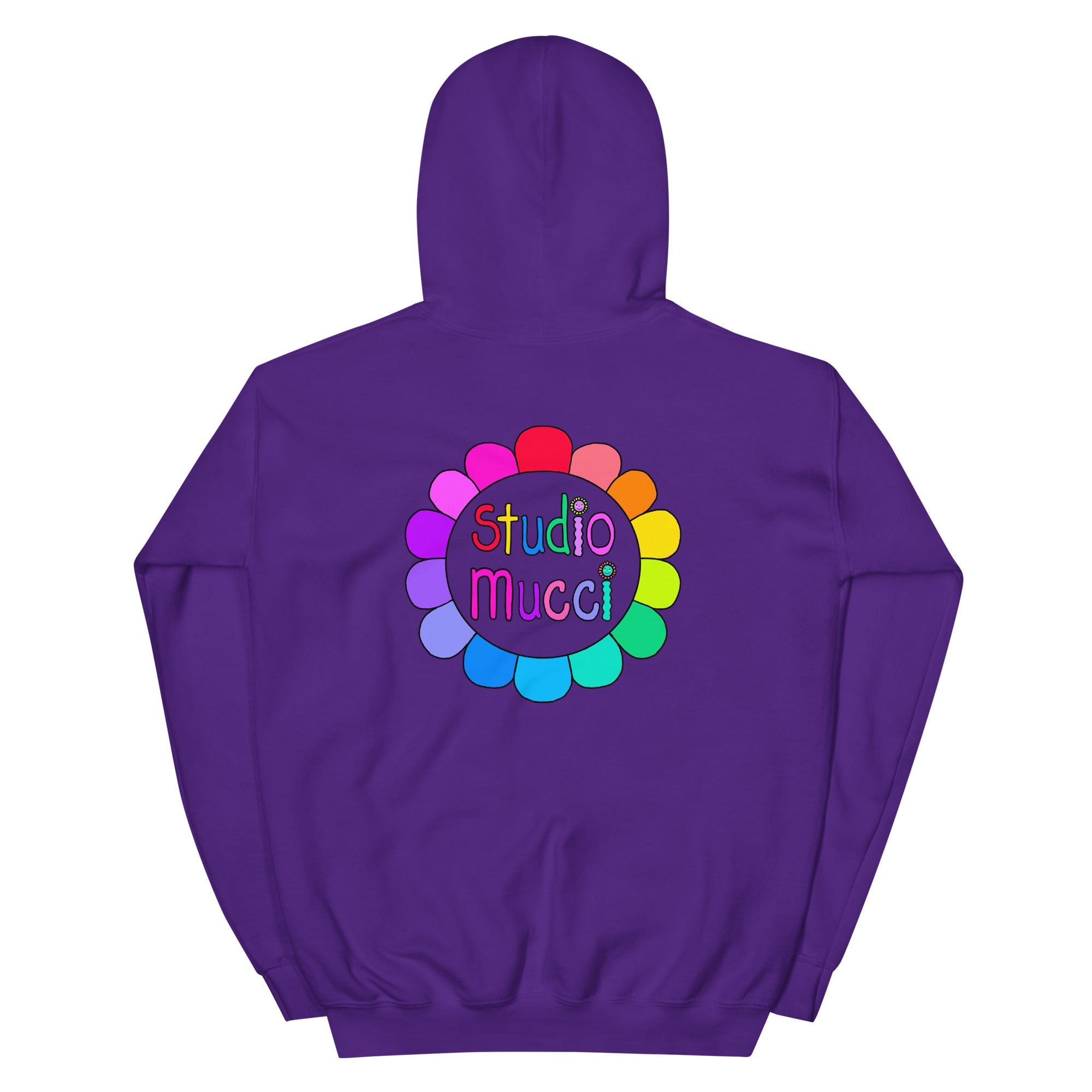 This hoodie design is based on an original mixed media artwork (acrylic paint, Posca markers, and digital collage) by Amina Mucciolo